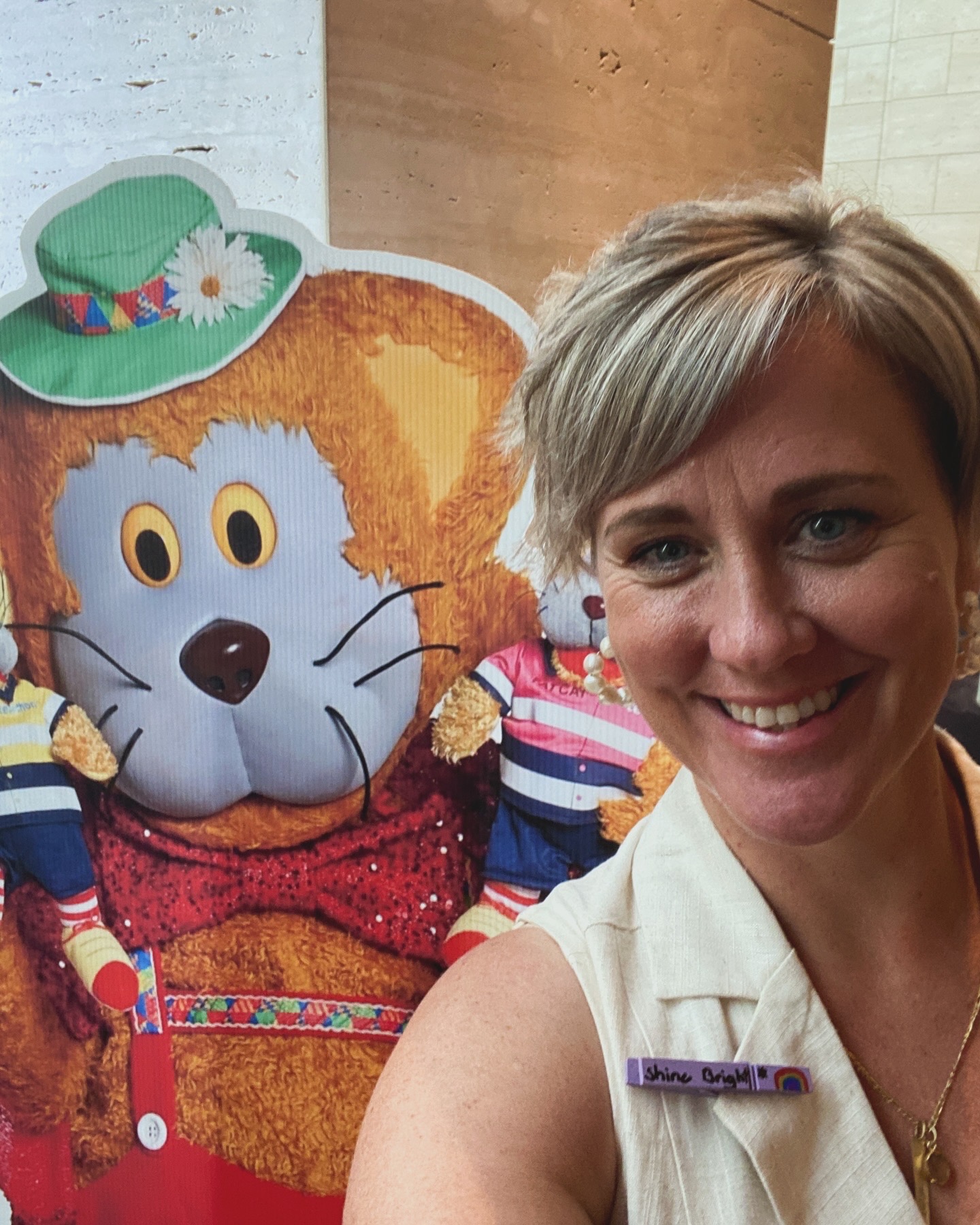 Bonnie Furzer (she/her) smiling at the camera with Fat Cat behind her
