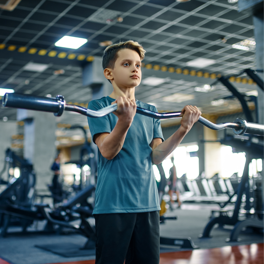 Young Boy Lifting Barbell in Gym
