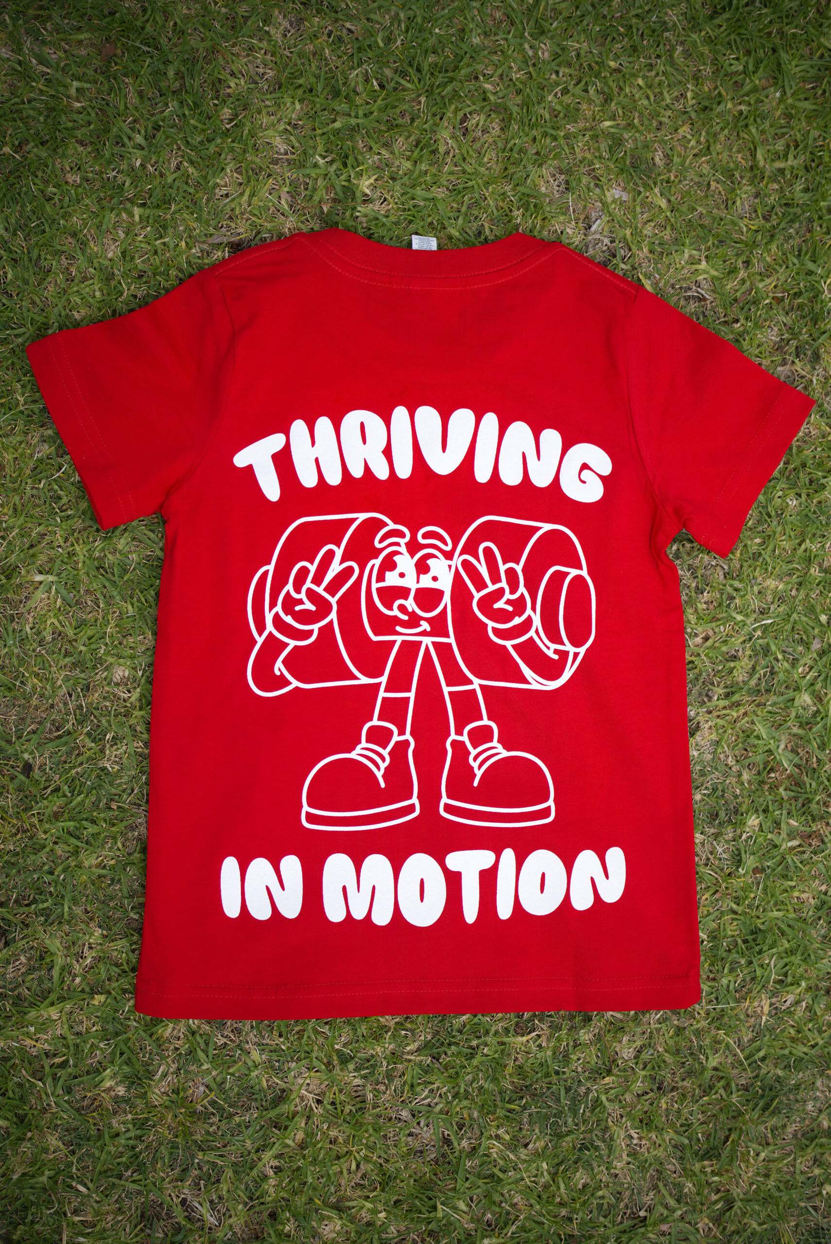 Kids/Youth T-shirts with Thriving in Motion dumbbell graphic on back and Thriving in Motion text on front.